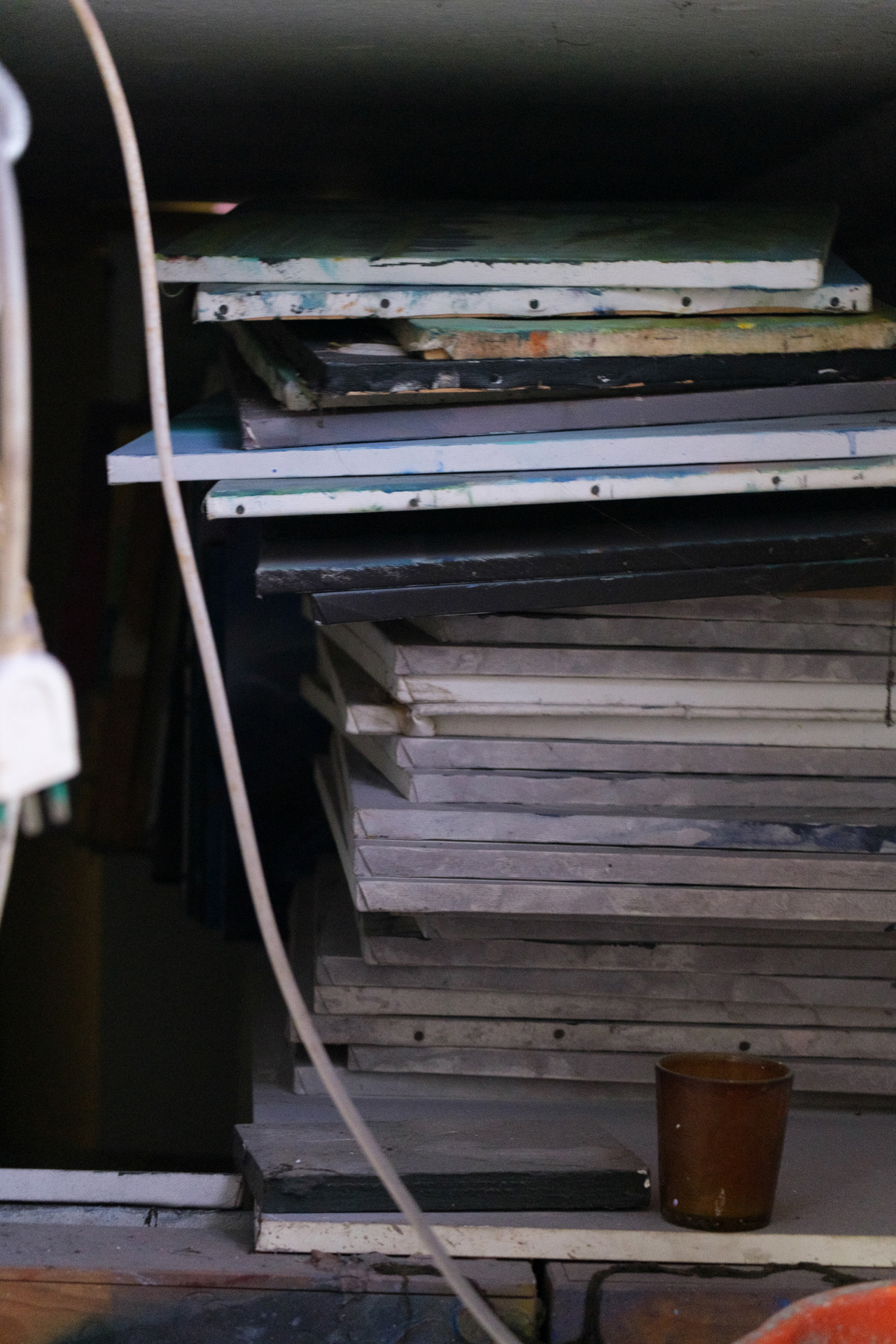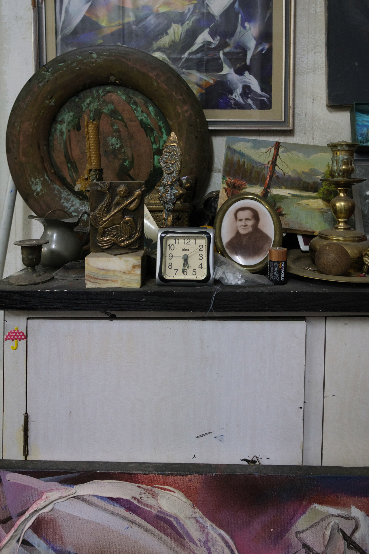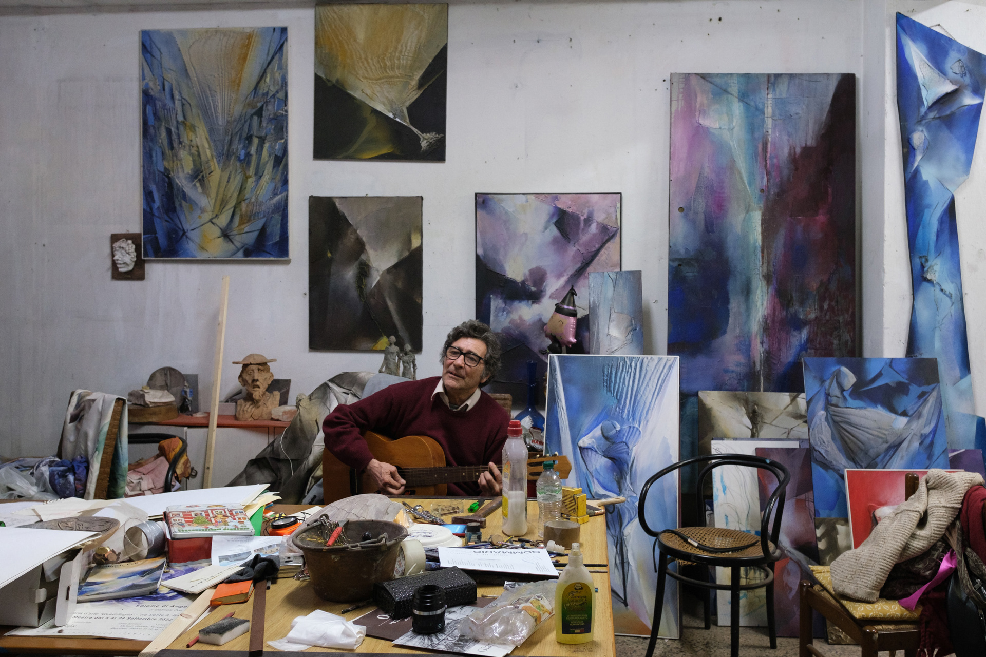 la vorticità delle tele si unisce alla caoticità dello studio, rendendo opera ogni singolo oggetto nella tana del pittore